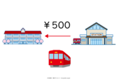 ―から―まで<手段>でどのくらいかかりますか。→〇〇円かかります。</手段>