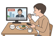 (わたしは)ニュースをみながら あさごはんを たべます。