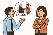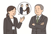 課長:会議室に(います)と思います。 - 部長:社長はこのグラフをご覧になりましたか。